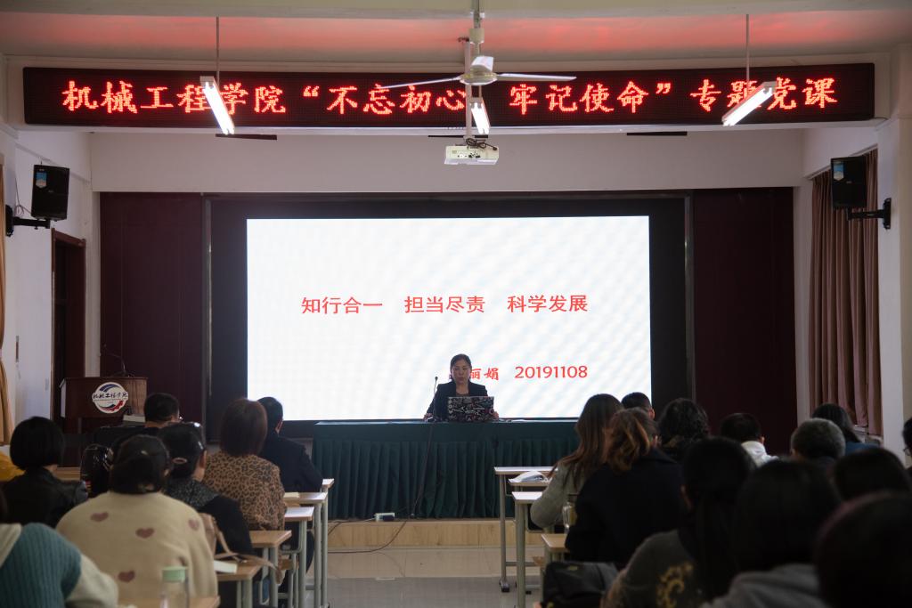 赵丽娟经理以“知行合一、担当尽责、科学发展”为题,深刻分析了共产党员敢于担当、知重负重、攻坚克难的精神特质,提出知行合一是共产党人坚定的党性原则和高度的党性修养,科学发展是解决一切问题的基础和关键。同时,赵经理结合自身针对机械工程团队建设情况的深度调研,认真分析了目前学院发展中存在的问题和不足,并提出了具有很强针对性的改进措施。
