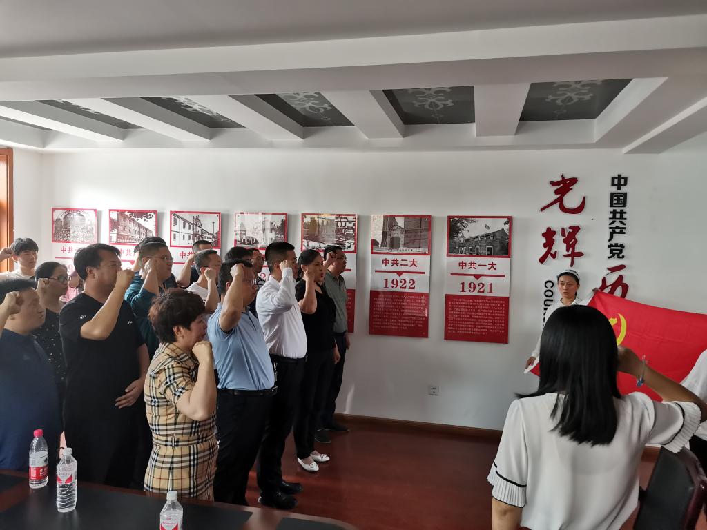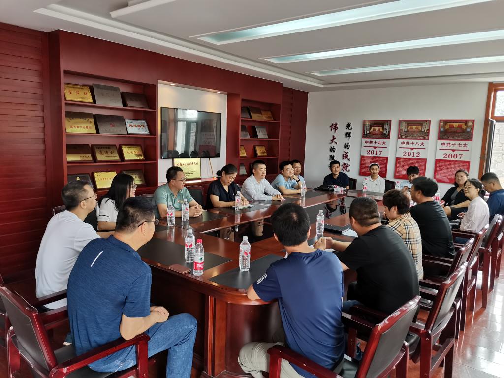 座谈过程中,公司党委书记王耕介绍了此行的目的意义,一是要推进“两学一做”学习教育,创新“迎七一”活动的内容形式;二是要深化“不忘初心、牢记使命”主题教育,增强党员的责任意识;三是要探讨学院与乡村振兴发展的融合要素,进一步发挥教育服务社会职能。会上,大家结合感兴趣的话题与黄家沟村干部进行了深入交流,并在村委会党建宣传区共同面向党旗重温入党誓词。