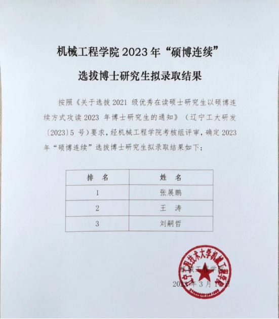 2023年“硕博连续”选拔博士研究生拟录取结果