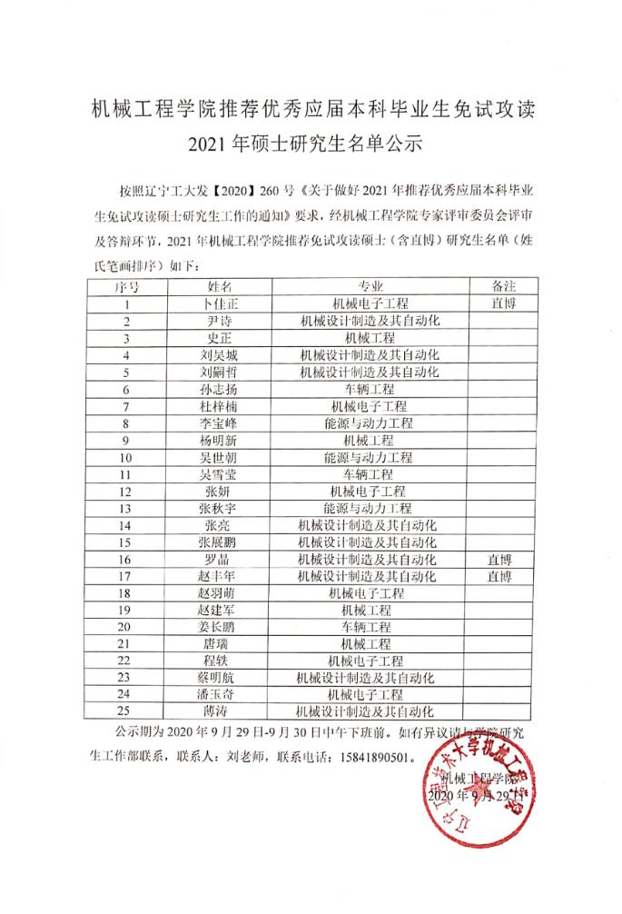 yd222云顶线路检测中心推荐优秀应届本科毕业生免试攻读2021年硕士研究生名单公示