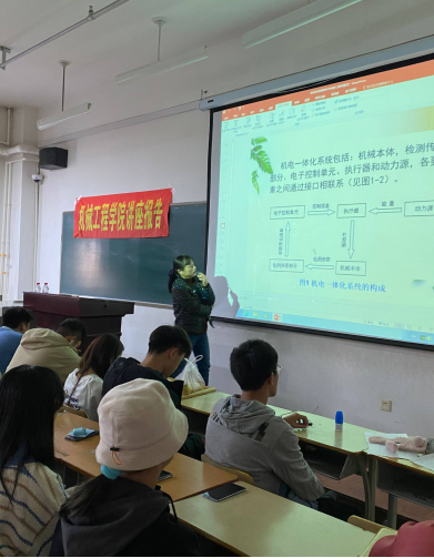 讲座开展于2020年11月14日上午九点,在博文楼315进行。这是本学期第一讲讲座。讲座的主题为“PLC与机电一体化”。本次讲座由讲师姜艳华担任主讲人。参与本次会议的有机电20-1班、机电20-2班、机电20-3班以及机电20-4班。