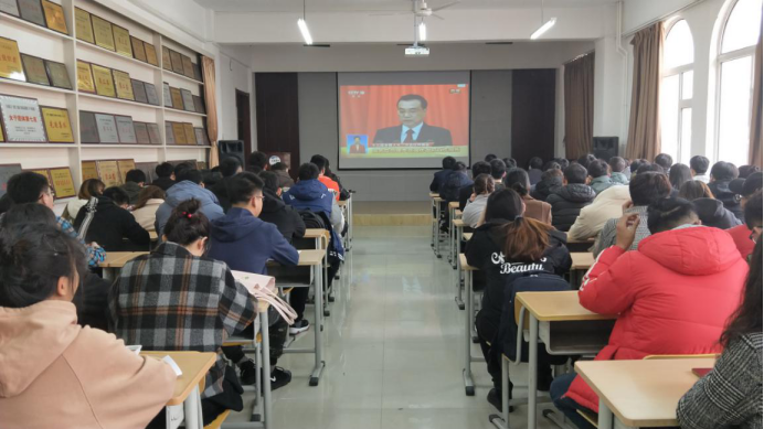 上午9时,学院组织师生代表在清雅楼302会议室集体观看了政府工作报告视频直播,并进行了学习与讨论。学院公司党政领导、机关科室负责人、全体辅导员、教师代表,以及员工党员、预备党员、入党积极分子、团学骨干150余人,集中学习了李克强总理在第十三届全国人大二次会议上所作的政府工作报告。同时,学院还积极组织广老员工在员工寝室通过多种方式学习大会精神。