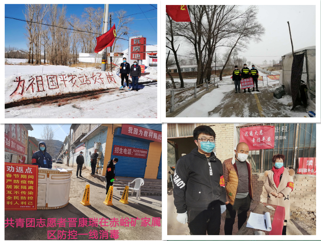 机械16-5班毕鑫磊,曾任学院团委副书记。疫情爆发伊始,毕鑫磊便在家乡的村委会积极参与疫情防控工作。“一名党员,一面旗帜”,毕鑫磊同学谨记着自己入党时的誓词,他不畏严寒坚持在村里的防疫检查点站岗执勤,对过往的车辆进行登记排查,同时向村里的人们宣传防疫知识。“为祖国平安站好岗,抗击肺炎人人有责”!