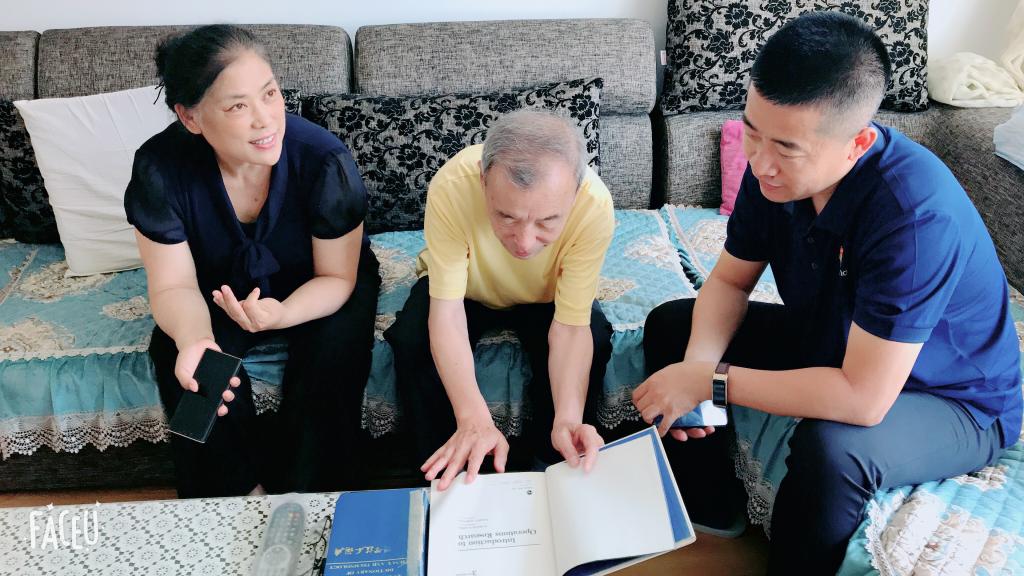 今年已经80岁高龄的李俊海教授看到大家非常高兴,热情地招呼大家进屋落座并亲切交谈起来。李教授介绍自己坚持每天晚上在小区里走两大圈,平均6000步,聊着坚持不用洗衣机,和老伴儿分工合作洗衣服,精神头儿十足;谈着对晚辈的喜爱笑逐颜开,谈着自己每天看的英文科技书籍,谈着自己的留学经历,充满自信和骄傲……