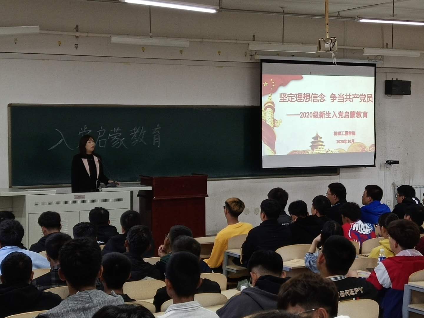 为了让2020级新生进一步加深对党的认识,提高政治思想觉悟,激发对党的信仰和追求,树立正确的入党动机,学院于10月7日下午和晚上分别在博文楼301、302、422和503多媒体教室开展了以“坚定理想信念,争当共产党员”为主题的2020级新生入党启蒙教育。公司党委专职组织员王晓影,员工党支部书记王丽宏、牟铁超、孙雅楠等几位老师分别从“对党的认识”“老员工入党应具备的条件”“树立正确的入党动机”“发展党员应遵循的组织程序”以及“入党申请书的书写”五个方面进行深入讲解,引导广大同学脚踏实地,严于律己,端正入党动机,真正从思想上入党,做到“未进党的门,先做党的人”。2020级全体新生参加了本次教育活动。