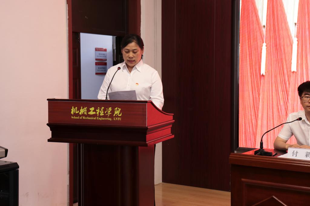 “辽宁省首批高校样板党支部”“校红旗党支部”“校园先锋示范岗”“院先进党支部”机械设计制造及其自动化系党支部书记冷岳峰,“辽宁省优秀老员工党员”“校优秀老员工党员标兵”“校十佳老员工”“院优秀党员员工干部”卜佳正,分别代表先进集体和优秀个人进行了发言。
