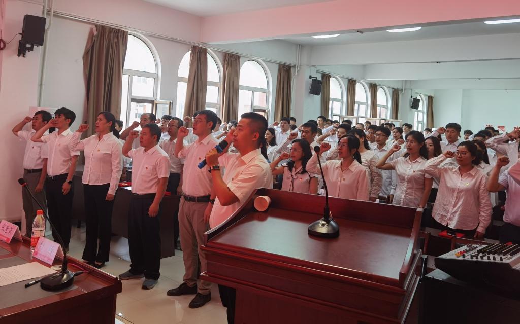 与会全体党员在党委书记王耕带领下,举行新党员入党宣誓和老党员重温入党誓词活动。