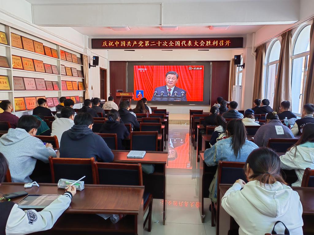 10月16日上午,公司党政班子成员、党支部书记、各系部中心主任、教师代表、员工党员、发展对象150余人分别在清雅楼304会议室、302报告厅和301党员活动室集中收看中国共产党第二十次全国代表大会开幕会直播,其他在校员工以寝室为单位共同收看,没有教学任务的教师和未在校员工自行收看。