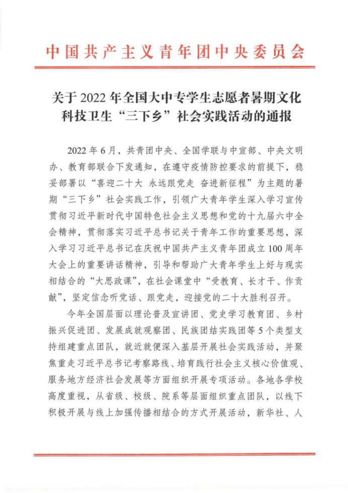 近日,共青团中央公布了2022年全国大中专员工志愿者暑期“三下乡”社会实践活动总结通报结果。经校团委和团省委推荐,团中央差额评选,我司助农致“阜”农产品包装设计实践团荣获全国“三下乡”社会实践活动优秀团队。据悉本次团中央共评共选出379个“三下乡”社会实践活动优秀团队,辽宁省仅有17个团队入选。